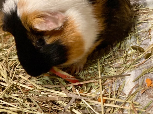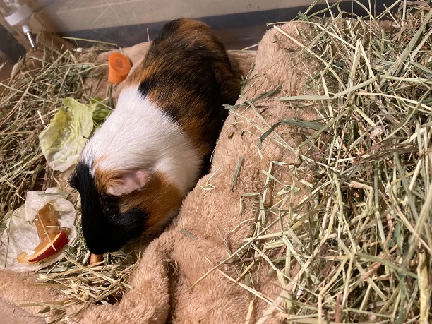 依然として、逆L字型体勢をとる傾向があるものの、摂取・排泄状態どちらも良好だった。夜、帰宅後もとても元気な様子でチモシーをついばんだり野菜を齧っていて涙が出そうになった。