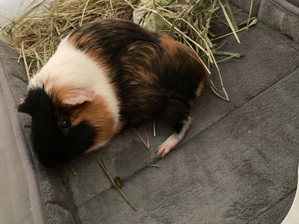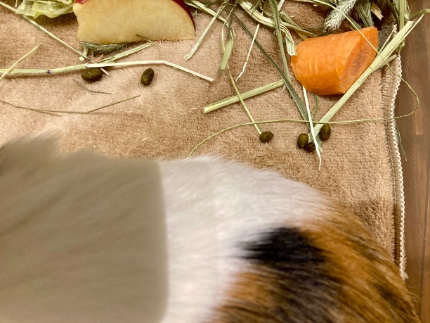 小上がりについては強めの注意とご助言をいただいた。決して若くないモルモットには、なるべく平坦で腰に負担の少ない環境を整えたほうが良いこと、ケージとして「衣装ケース」が適している旨教わった。