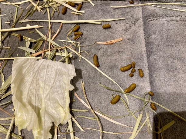 摂食状態は概ね良好。ニンジン・リンゴはあまり食べなかったが、レタスは前日よりもよく食べた。チモシーも同様。