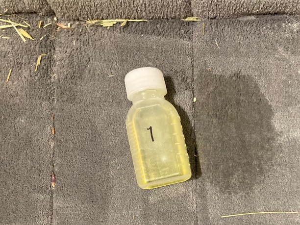 cmの範囲のシミを2ヶ所確認できた(濃度や色は前日と同様に「薄め」で「透明」と推定)。