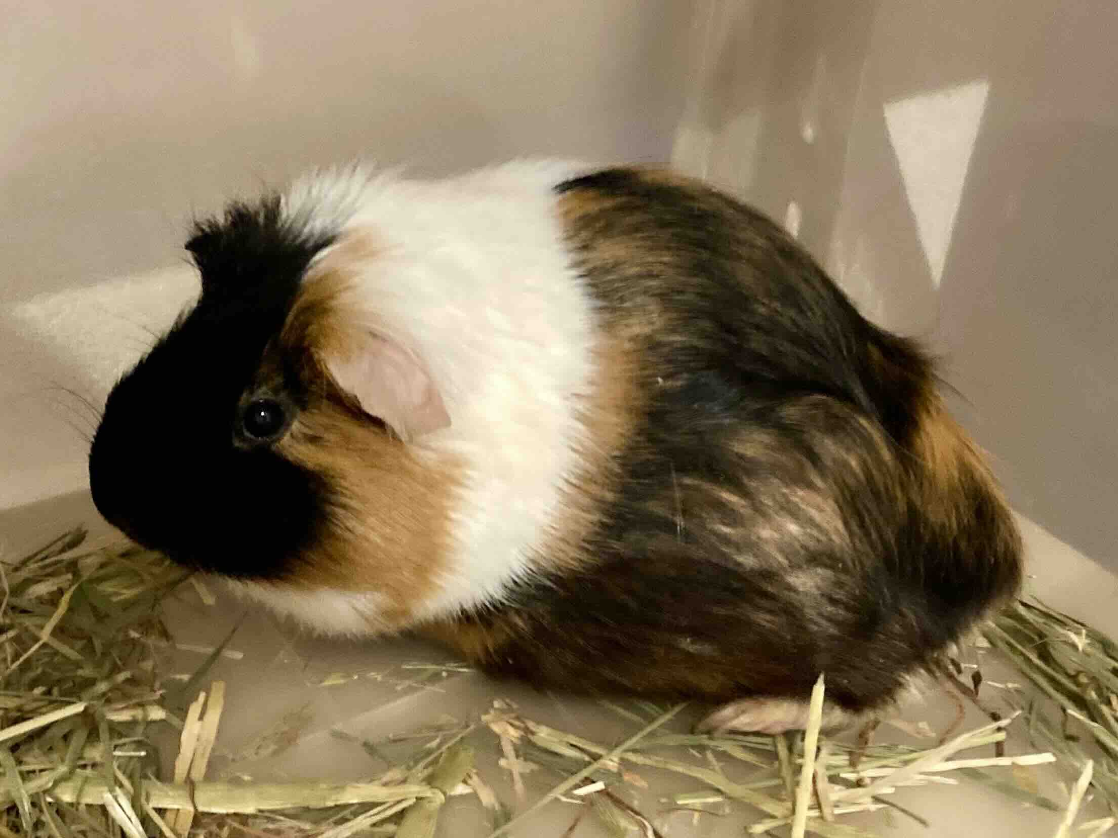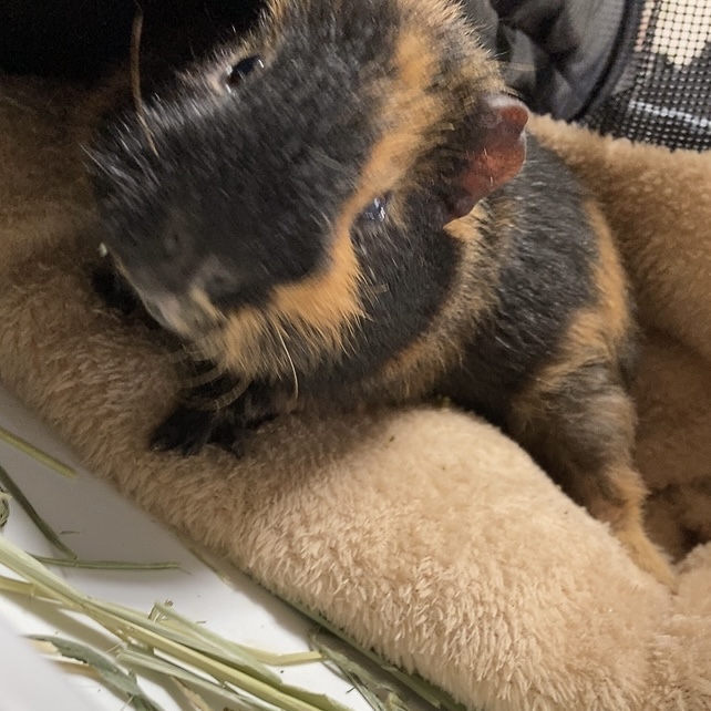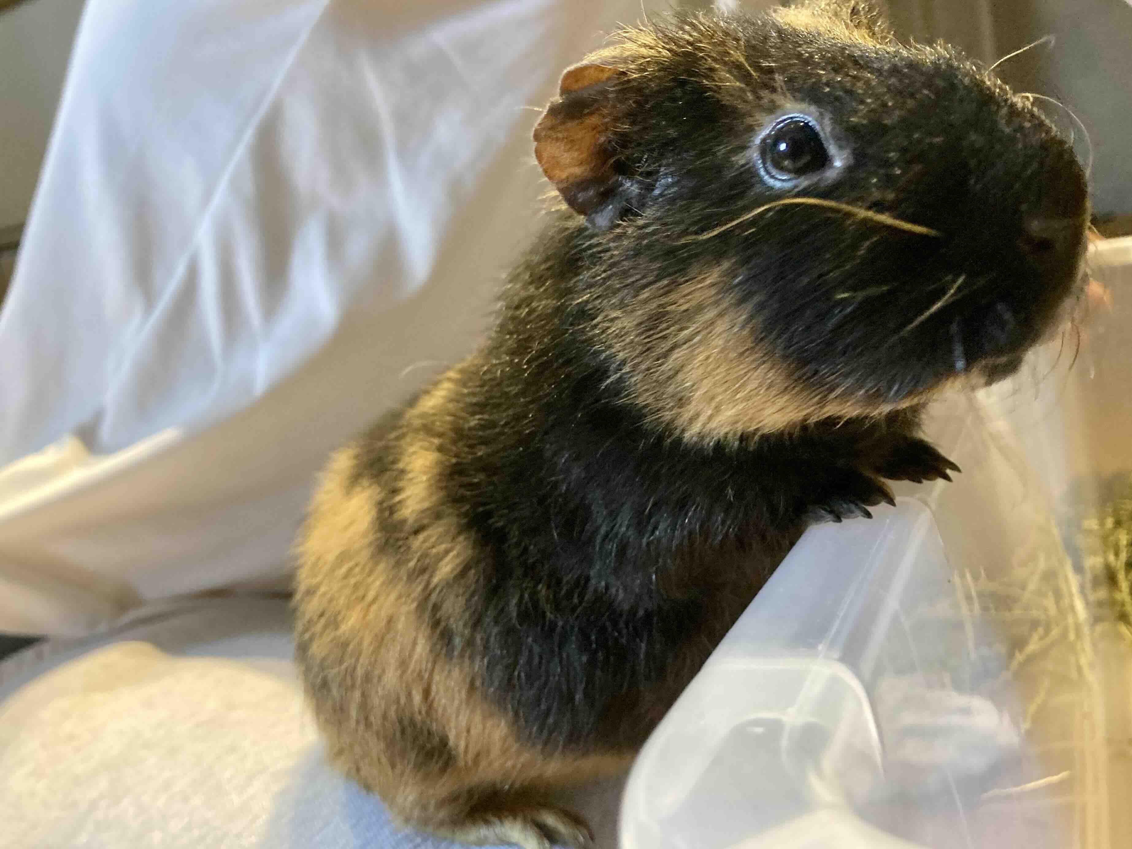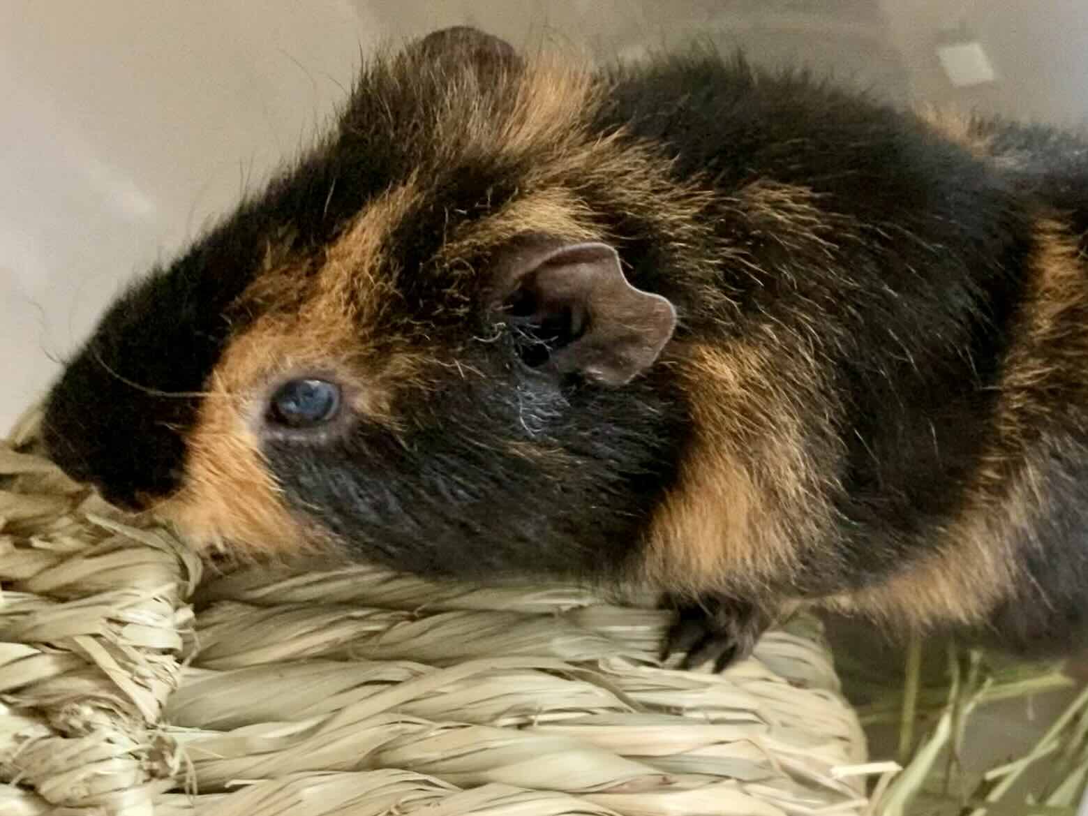 ようやく診察室に呼ばれ先生に診てもらう。頻繁にチモシーをかぶったり埋もれたりすること、ペットショップにいた頃に片目の調子が悪かったことなども伝える。
