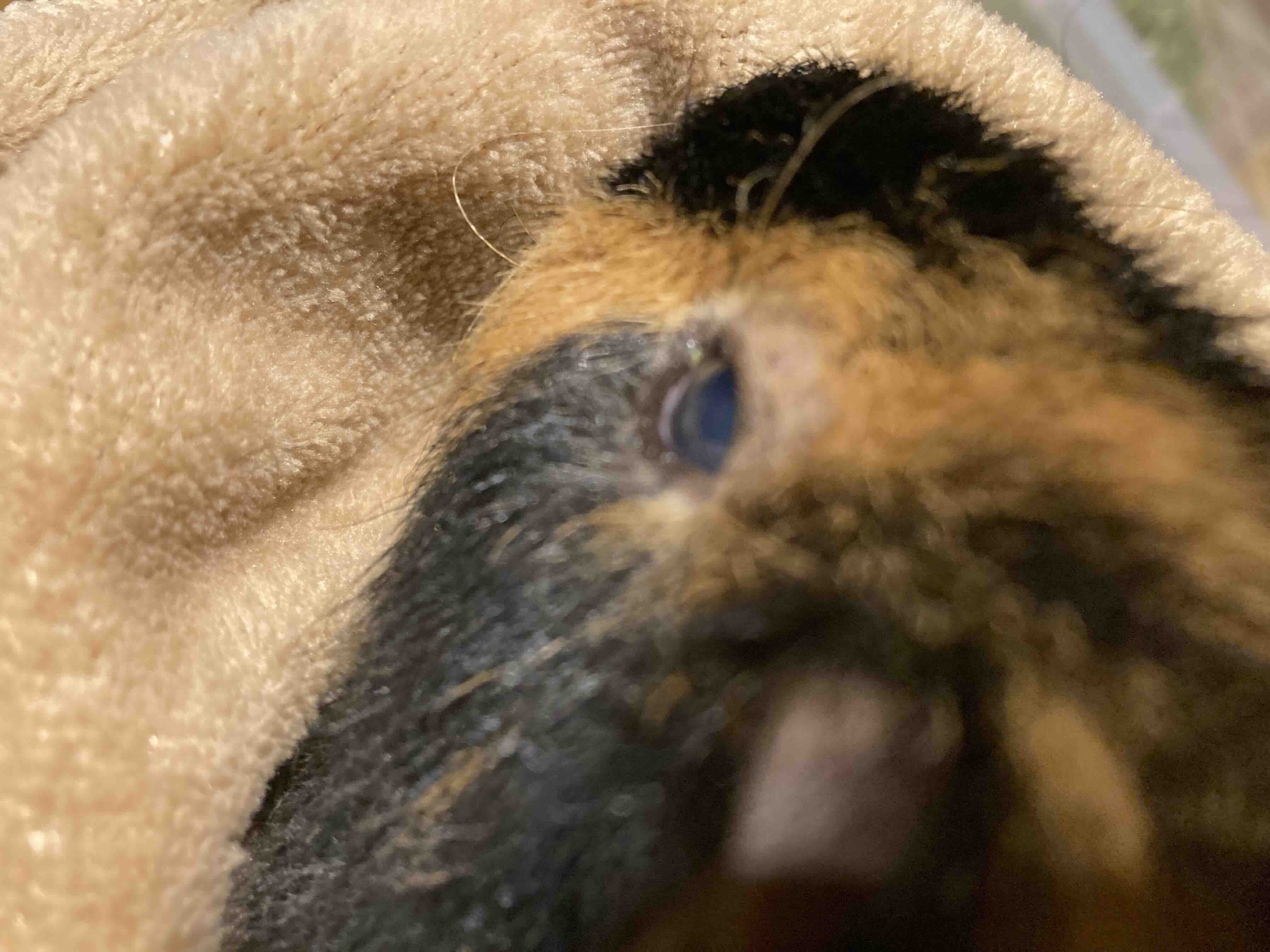 さて、話を戻そう。レムの目のちょっとした異常、一時的なものかしら?それともチモシーにまみれていたからついに角膜に傷でもついたのだろうか?そういえば我が家に来る前ペットショップにいた頃から、目の調子は悪かった(詳細はこちら)。それが関係しているのだろうか?例によって少し様子を見ることに。