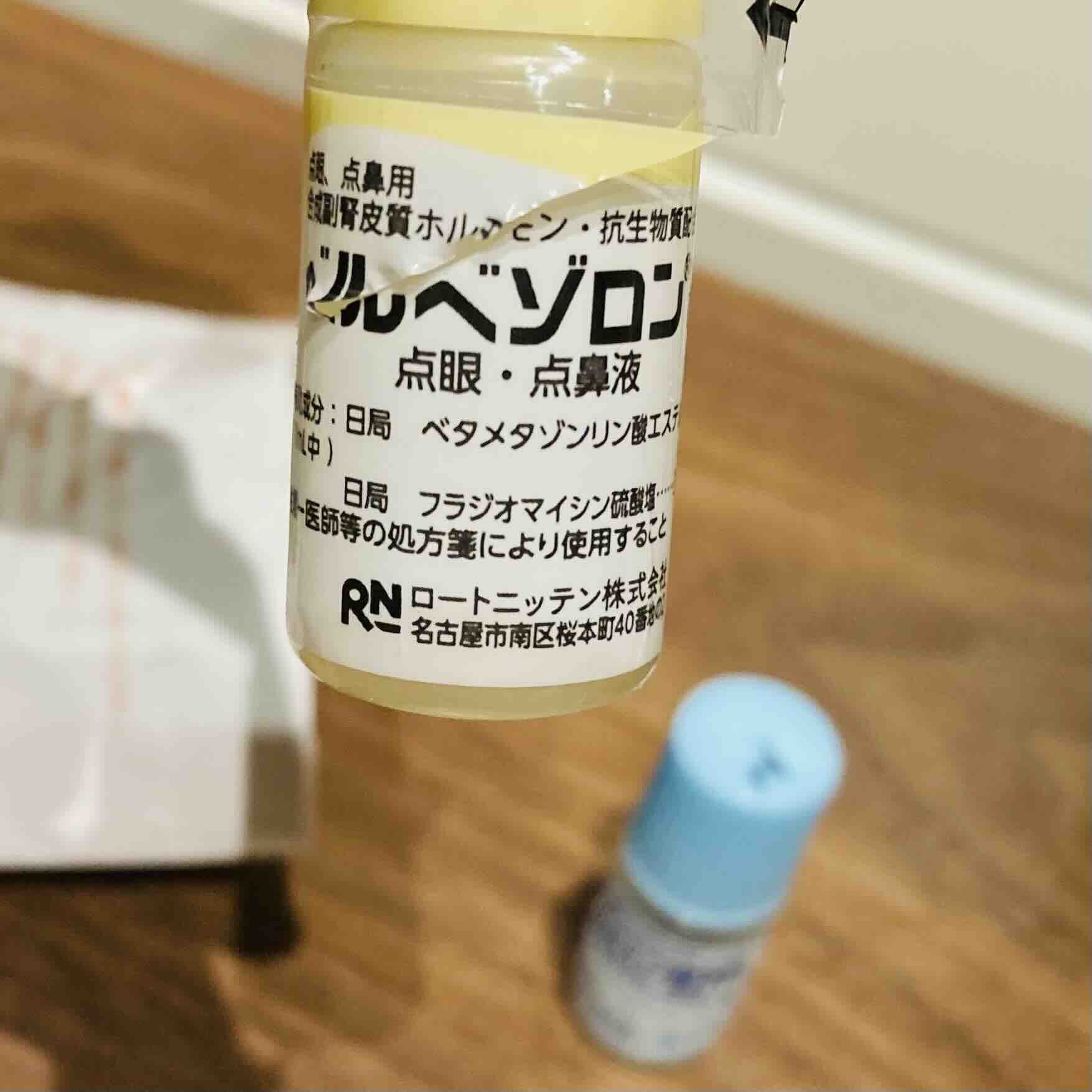 急いで病院予約を試みるものの混み合っていてすぐには取れず、2日後に診てもらえることになった。症状が出ている左目を除けば元気だ。しかし左目の様子があまりにも痛々しい。動物園などでよく見かける状態だ。対処療法的に何かできることはないかと思い、常備している目薬(当時家に常備していた目薬はこちら)を与えて良いか、かかりつけ医に確認したところokをもらう。
