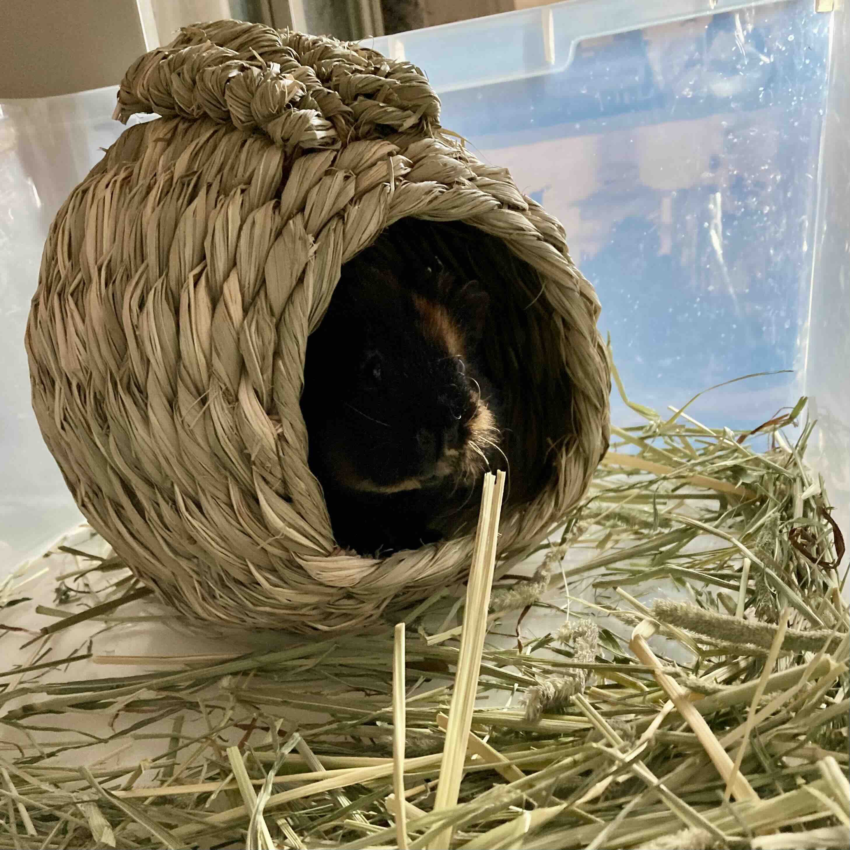 少し脱線するが、レムは、チモシーをかぶる、チモシーにまみれる、チモシーで自分を囲う、といった行動を我が家に来た時から頻繁に見せる。その状態で大抵はチモシーを食べている。おそらくペットショップで虫籠のようなケージに閉じ込められていた頃からの癖だと思われる。どことなくカヤネズミの巣作りを想起させるため、我が家ではレムのこの行動に出くわすと「カヤってる」と表現している。
