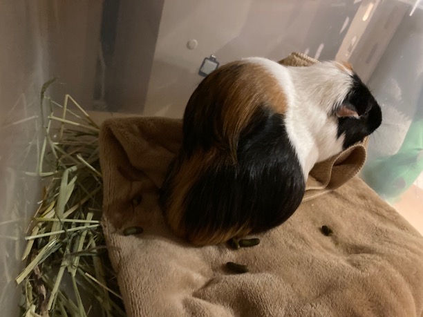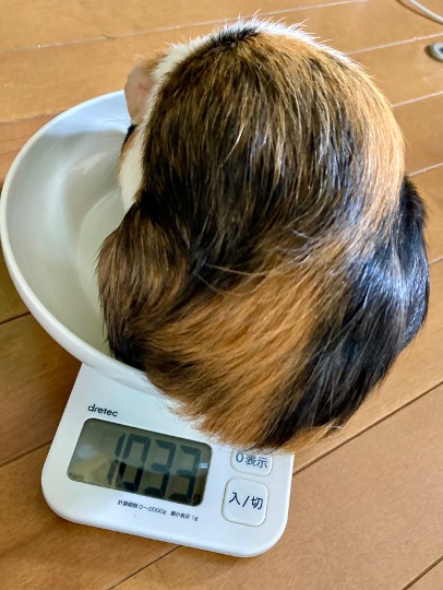 他にも、脂肪腫があるモルの場合、1200 g超えると危険と言われた。さらに別件で気になることとして牧草代用ペレットを非常食として問題ないか、レムの癖や居住環境についても相談しアドバイスを頂戴した。詳細は割愛するがとても参考になった。