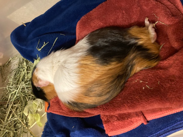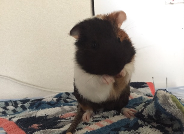 13~14日。思い返せば「最後の日」を除いて、この2日間が最も、体調悪そうに見えた。もう頑張らなくていいんだよ、と何度も思った。 13日の朝は、相変わらず、よく食べ、よく出した。他方、お尻は汚れがち、お腹と脚の内側に関しては禿げているようだ。床ずれ的な状態かもしれない。 そして何より、立ち上がれないことが多くなった。立ち上がるどころか方向転換すら困難な時がある。 身体全体のバランスを保つことが難しく、ひっくり返りそうになることもある。歩行困難も認められた。そもそも歩行自体少なくなった。 四肢自体はそれぞれ「反射」、「動かす」、「力を入れる」等正常に可能ではある。また、私たちが背部腫瘍を支えてあげると歩行がやや「正常」に近づく。 摂食や排泄等が困難になる前に一度診てもらった方が良いか、そして何か家でできることはないかメールで先生に尋ねると「小さな車輪を付けた柔らかい板にのせたら足を動かしやすくできるかもしれない」とのこと。モルモットの車椅子か。検索してみると少なからずヒットする。画像を参考に資材を集めることにした。 13日の夜あたりから食欲が減ったように見えた。豆乳やサプリは摂取していたが、彼の好物であるリンゴやニンジンをあまり食べない。 目の輝きを失いつつもあった。うんちが黄色っぽいのも気になる。