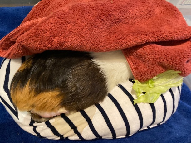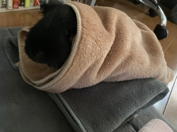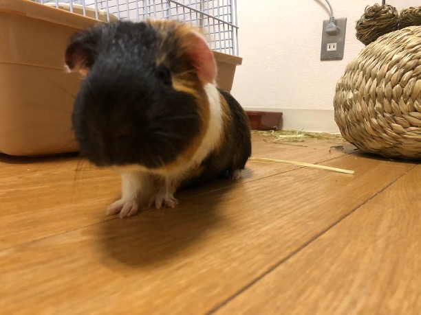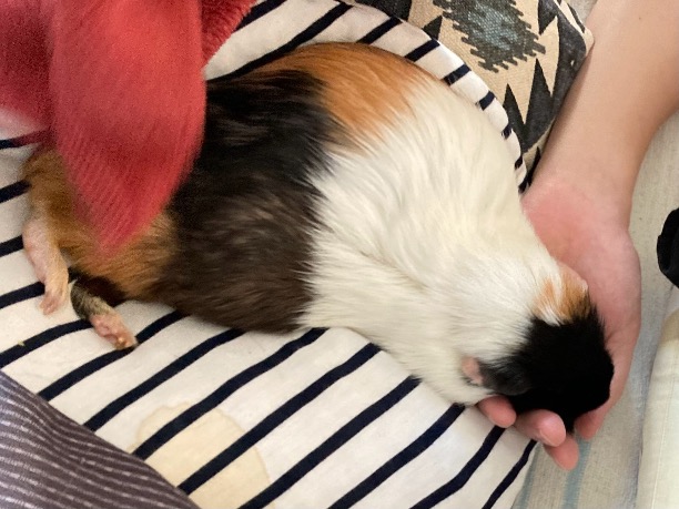 15~18日。 15日午前中くらいまでは調子が悪く見えた。特に寝起きなどは動きが非常に緩慢だった。しかし午後から不思議と体調がごくわずかではあるが回復した。まだ自力で体のバランスを保つこと(常に前両足を踏ん張っていた)ができたし、這いつくばるようにわずかながら移動もできた。 食欲もやや回復し、ニンジンやレタス、チモシー(好ましくはないが、昔から好きな「穂」の部分)やモルモットセレクションプロ(非常食)を食べていた。 他方、うんちにはゆるいものが混じった。量も減っていた。何より、メルがなくなる前日に放っていた「死臭」がした。 また、今、写真や動画を見返すと、下半身が捩れた状態であることが多くなっていた。眼力も弱い時が多い。私たちは家にいる間は大抵彼の身体を撫でていた。 それと、車椅子を作り試行してもらった。しかし、床の上では足が滑ってしまい、最終的に後脚が車体に乗ってしまう。一方、タオルの上だと車輪が動かない。部品や車幅、車高を見直し作り直そうとしたが、間に合わなかった。