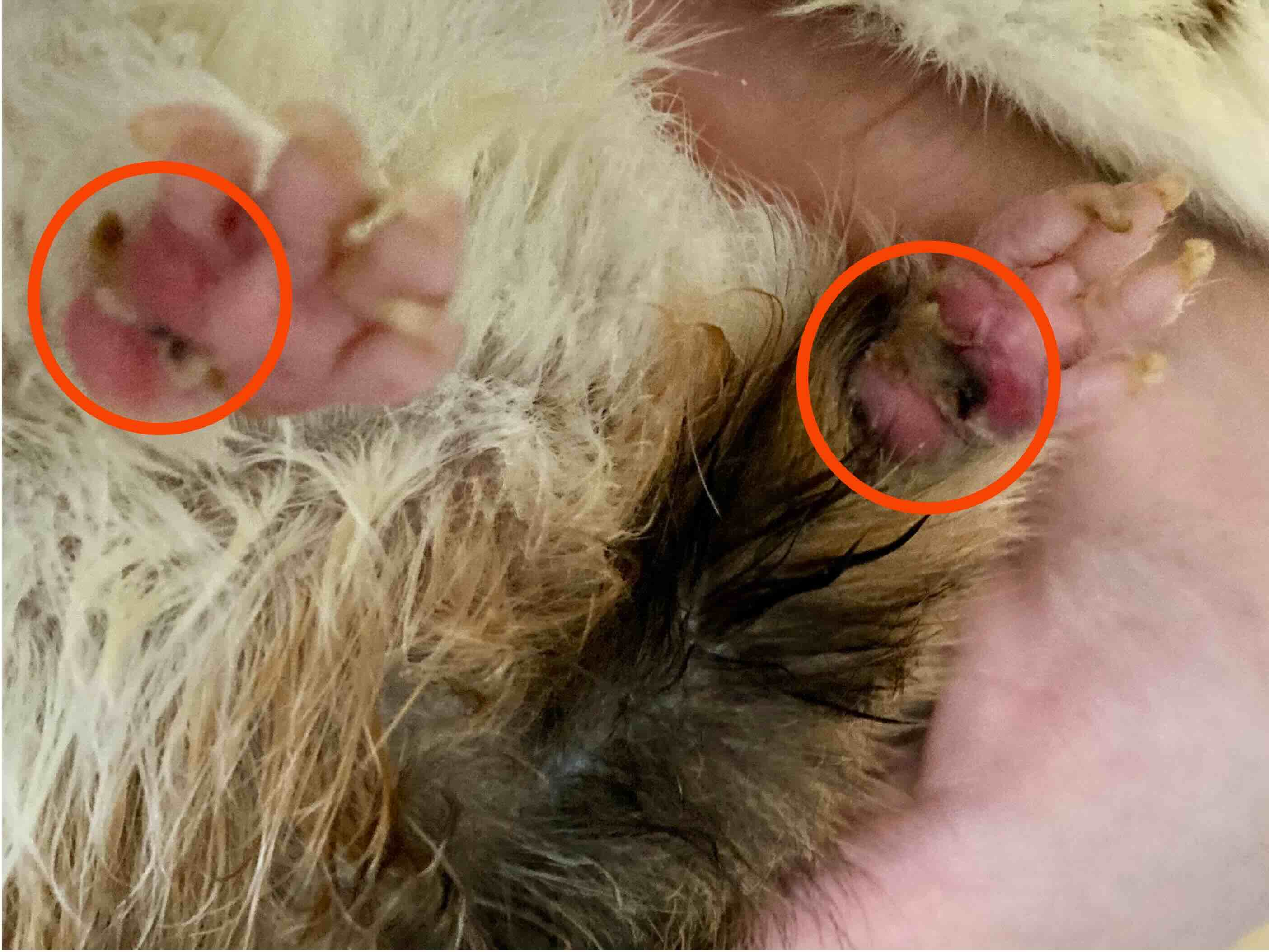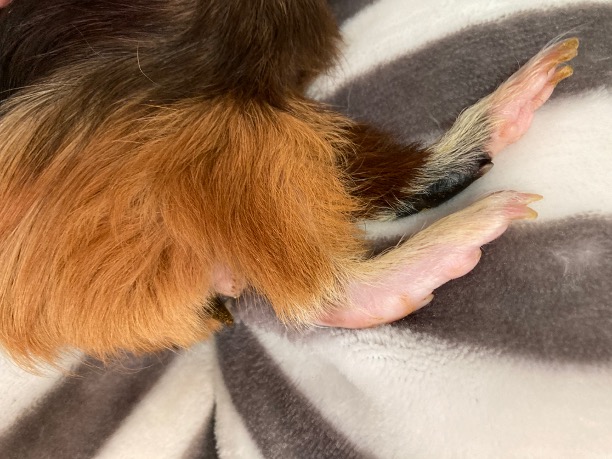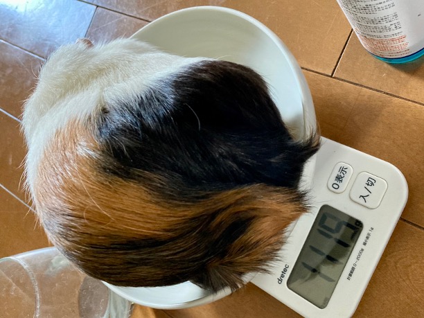 10~12日。1週間前まで辛うじて1000 g台だった体重が、ついに1100 gを超えた。以前にも増して腫瘍部を除いた全身は全体的に骨張っているため、脂肪腫が重たくなっているのではないかと推測する。摂取量や排泄量は依然として歳相応に見えるが、活動量は徐々に減っている。 よく見ると足の裏に黒い「かさぶた」らしきものが・・あるいは汚れているのかと思いぬるま湯で溶かそうと試みるが変化なし。少し引っ張ると嫌がるため角質増多と判断し先生にメールで相談した。すると「床に擦れてできる、硬い皮の部分なら切っても大丈夫」とのこと。汚れが溜まりそうなので言われた通り切った。 他にも、目ヤニと目周りの乾燥も気になった。適宜ウェットティッシュで除去し馬油を塗った。