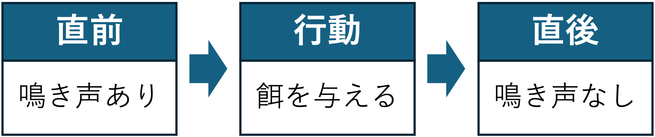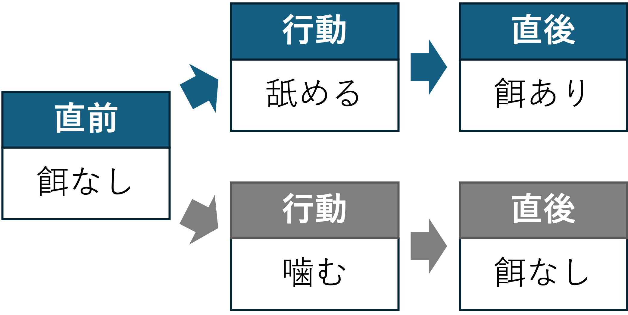 ※1:【オペラント条件づけ】行動の結果によってその行動の頻度が変化するタイプの学習([3])