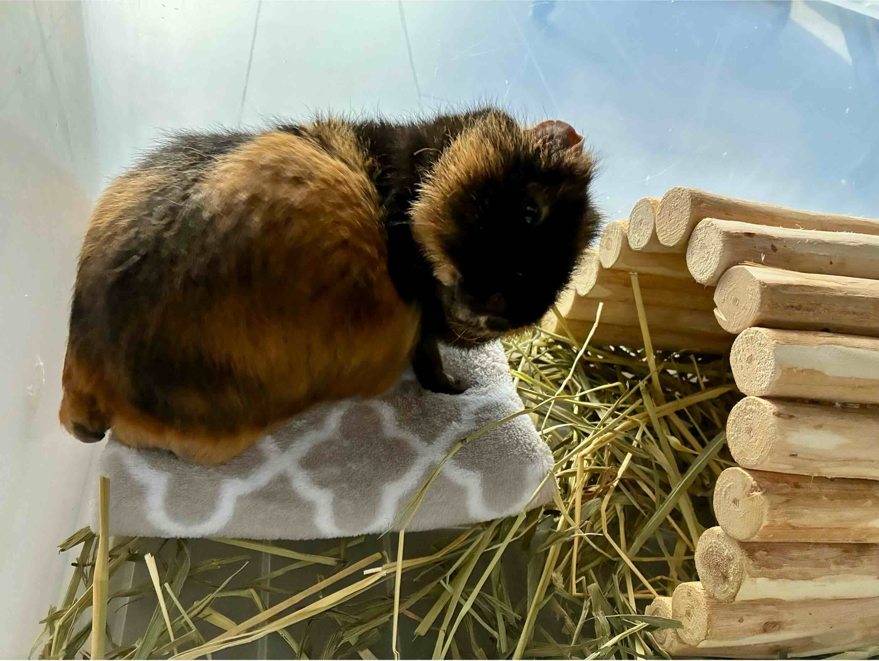 追記:食欲増進剤(ペリアクチン)と消化管機能亢進薬(プリンペラン)についてざっくり調べてみたが「症状の慢性化」につながる可能性はなさそう。併せて最近朝晩1切ずつ与えているパプリカについても調べてみたがやはり問題なさそう。 となると,最近野菜を多めに与えていることで牧草(繊維質)の摂取量が落ちていたのかもしれない。モルモットは良質な牧草を主体(食事の85–90%)に摂取する必要がある[1]。当たり前のことではあるのだが,レムの体質を考えると,水分も十二分に摂取させたい。冬でも水分量を確保できるように,そして,トレーニング時,牧草代用ペレットに頼りすぎないように,と野菜を多めに与えていたのだが,バランスを取るのがなかなか難しい。。意識しよう。