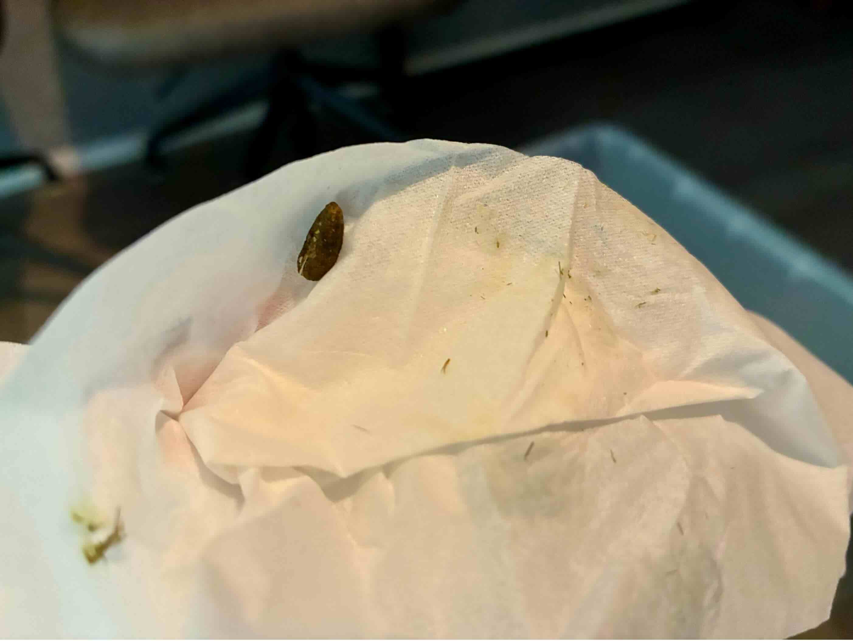 翌朝,30個程度のうんちを確認。大きさも正常。ただし,形がイビツなものが含まれた。常備薬を投与。他,排尿や食欲,活動量に問題なし。相変わらず目がキラキラしている。