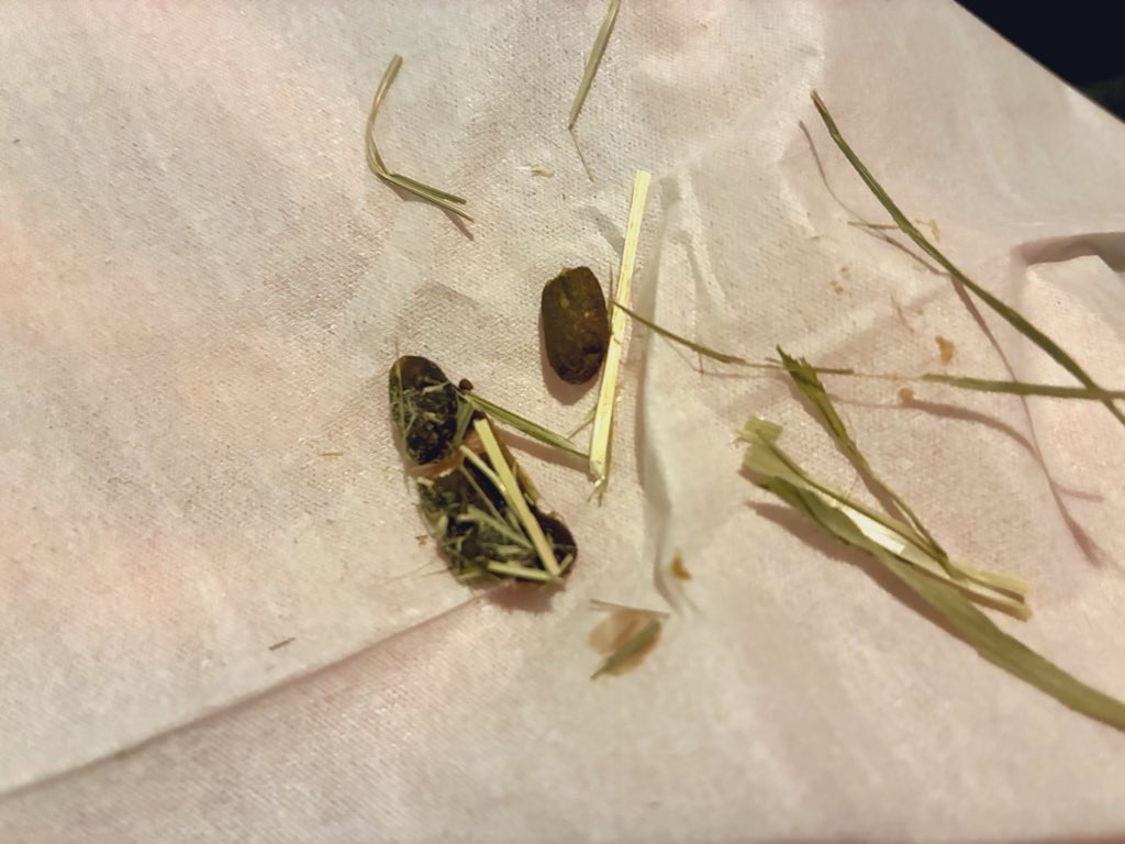 レム(2歳10ヶ月16日)。 牧草代用ペレットを吐き出した。その後問題なし。
